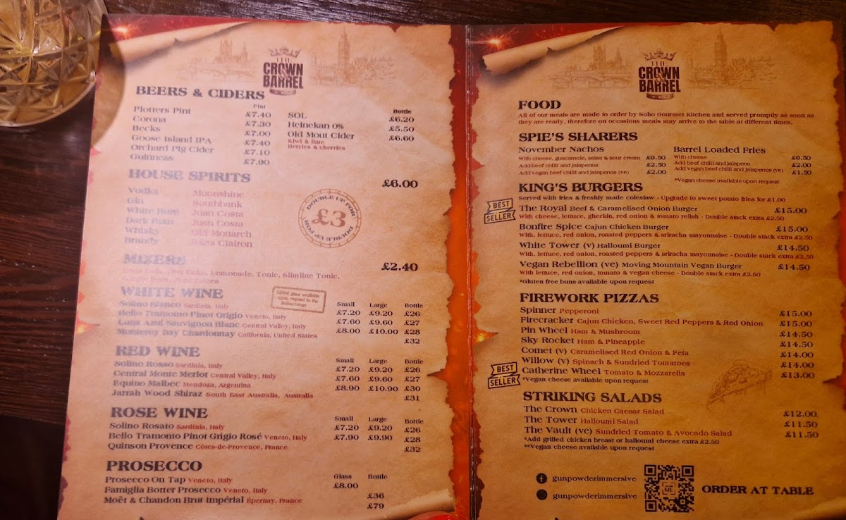 Begin your visit with delightful Spie’s Sharers like the November Nachos or the indulgent Barrel Loaded Fries. For those seeking a refreshing beverage, there’s Prosecco on Tap at just £8.00, along with selections from Famiglia Botter and Moët & Chandon.